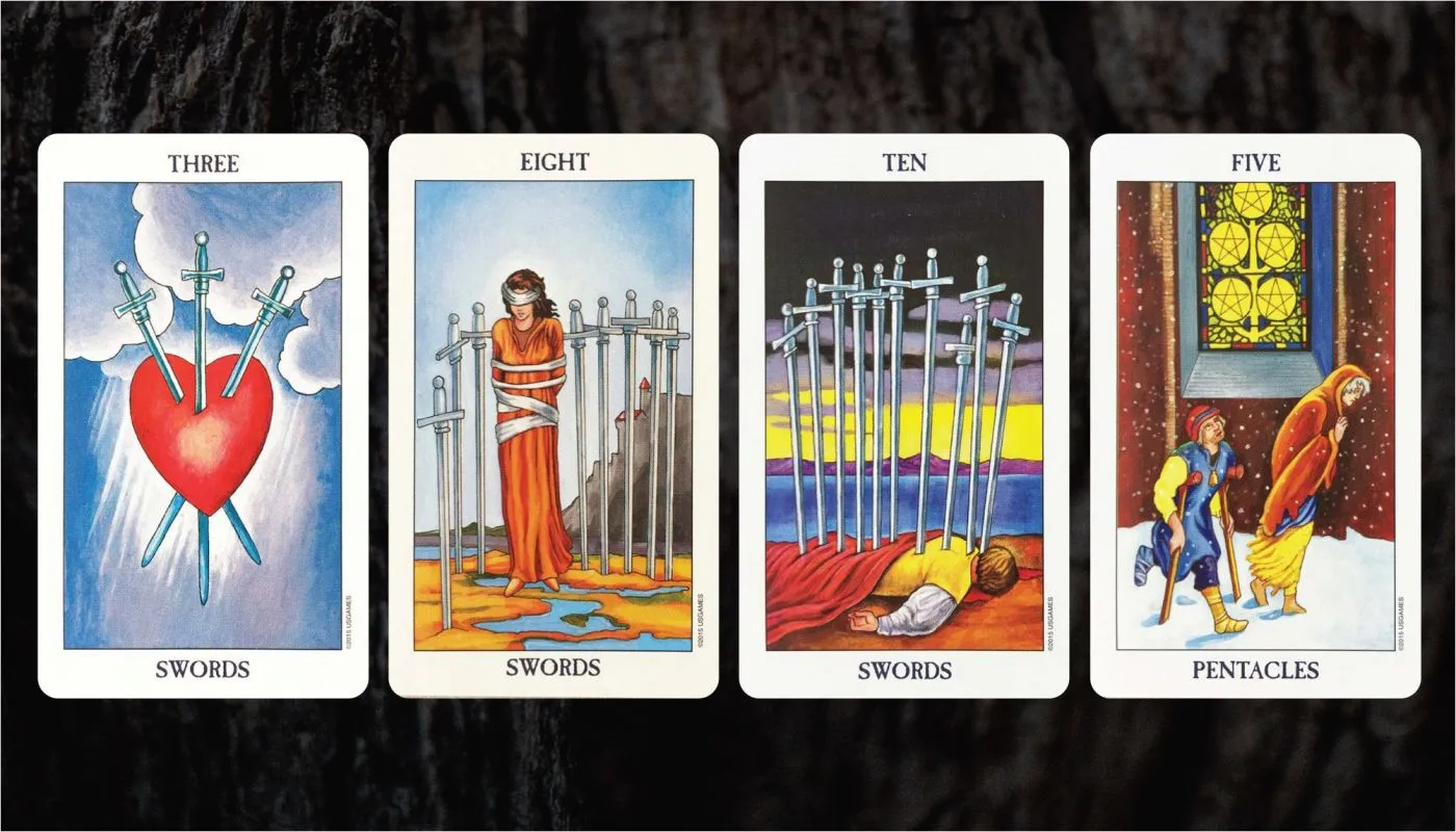 De Drie van Zwaarden toont innerlijke strijd en emotionele verwondingen veroorzaakt door agressie.