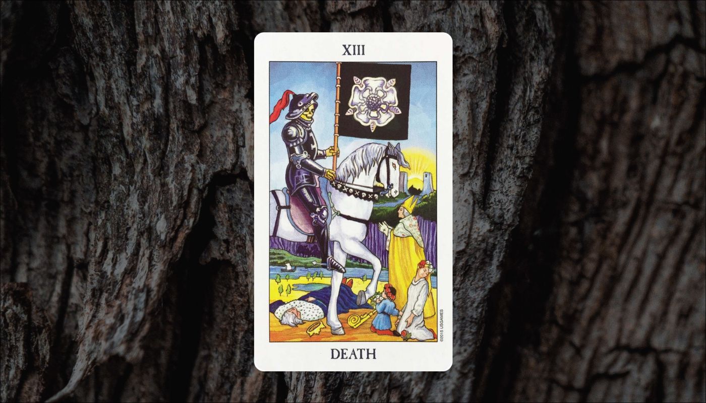 De Dood staat niet voor letterlijke sterfte, maar symboliseert transformatie. De kaart erkent moeilijkheden en pijn, maar toont ook hoop. Als je je angsten onder ogen ziet en aandachtig kijkt, ontdek je de bisschop die vertrouwen symboliseert. Let ook op de stralende zonsopgang boven zijn hoofd - een teken dat er altijd licht is.